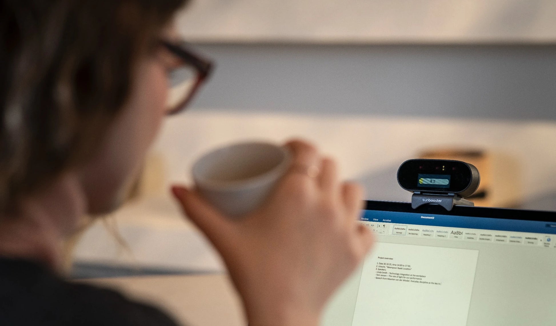 Het advies van SunLED is om de SunBooster tijdens deze videocalls even de andere kant op te richten (hij pauzeert dan automatisch) of door op te knop te drukken even te pauzeren. Net wat in uw situatie het gemakkelijkste is.